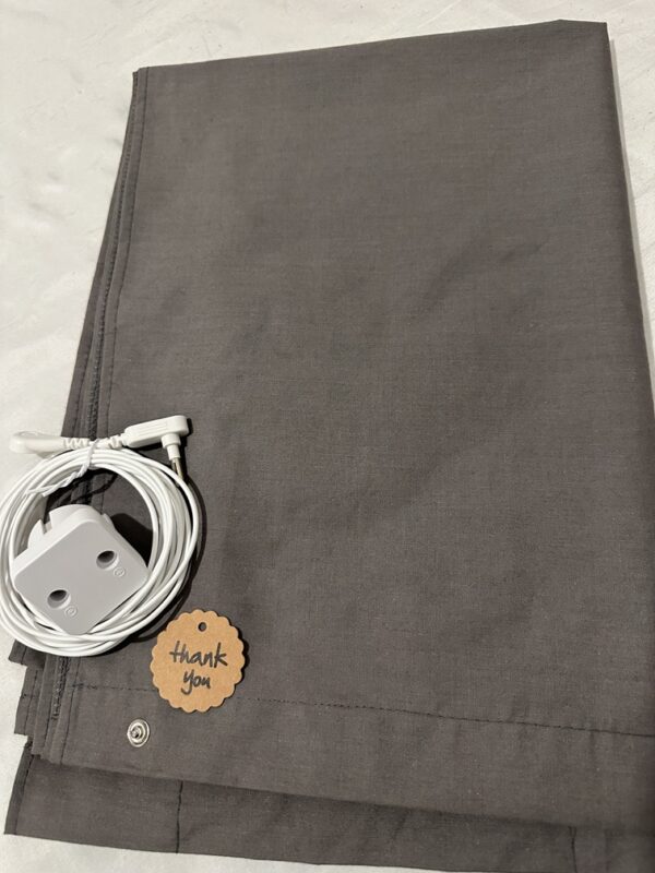 UZEMLJENJE – Naš veliki uzemljivač marke Belsago je dimenzija 142 cm” x 95 cm” , koristi kabal za uzemljenje dizajniranu da se priključi na uzemljivački priključak vaše zidne utičnice ili uzemljene šipke, povezujući vas sa zemljom dok spavate. Postavlja se ispod vašeg tela, preko vašeg običnog donjeg čaršava, poprečno ili po dužini, pokrivajući deo vašeg kreveta gde vaša koža obično dodiruje čaršav, prekrivač ili ćebe. Ne mora nužno pokrivati polovinu celog vašeg dušeka.
